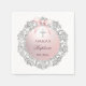 Silver Glitter Frame Pink Bow Baptism Napkin
