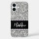Silver Glitter & Gems with Name and Monogram Case-Mate iPhone Case