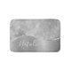 Easily personalise this silver brushed metal and glamourous faux glitter patterned bath mat with your own custom name.