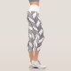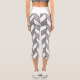 These modern capri leggings feature an elegant chevron design with a geometric herringbone pattern in white, grey and faux silver glitter with black lines.