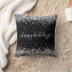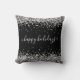 Silver Glitter Happy Holidays Sparkle Shine Black Cushion