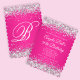 Silver Glitter Hot Pink Monogram 50th Birthday Invitation