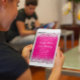 Faux shiny silver glitter with sparkles against a bright hot pink ombre graphic image.