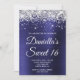 Silver Glitter Indigo Blue Foil Sweet 16 Invitation