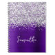 Silver Glitter Indigo Purple Glam Script Name Notebook
