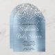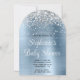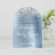 Create your own faux silver glitter and light blue foil baby shower invitation for your friend with a customisable QR code on the back to share her online registry URL.