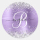 Silver Glitter Light Purple Foil Elegant Monogram Classic Round Sticker