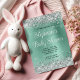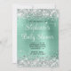 Create your own faux silver glitter and light teal foil baby shower invitation for your friend with a customisable QR code on the back to share her online registry URL.