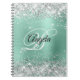 Silver Glitter Light Teal Metallic Fancy Monogram Notebook