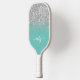Silver Glitter Light Teal Ombre Modern Script Pickleball Paddle