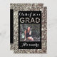 Add a single digital photo to this pretty silver glitter-look graduation announcement. A great way to express the girl graduate's feminine and girly side in metallic silver grey and black. Script text with her name on front.