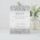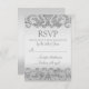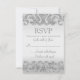 This custom modern RSVP card design features faux silver glitter accents with a silver background. Perfect for elegant and modern weddings. Change the font style, move text, and more, by clicking the "Customise It" button.