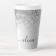 Silver Faux Foil Metallic Sparkle Glitter Brushed Metal Monogram Name Latte Coffee Cup Mug. This makes the perfect sweet 16 birthday, wedding, bridal shower, anniversary, baby shower or bachelorette party gift for someone that loves glam luxury and chic styles.
