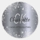 A faux silver looking background. Decorated with faux glitter dust. Personalise and add your first name, monogram initials and full name.