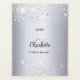 A faux silver metallic looking background decorated with faux glitter dust. Personalise and add your first name, monogram initials, full name and a year.