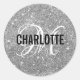Modern silver glitter sticker with a black name and a white monogram. Personalise with your name and initial.