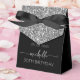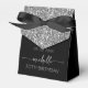 Girly Elegant Modern Stylish Silver Glitter Monogram Name Signature Script Custom Personalised 30th (or any age) birthday Favour Box. This design featuring your first name in a pretty hand written style swash tail font signature typography (or calligraphy) above faux silver grey colour glitter block on black background. These stylish girly feminine gift boxes great for handing out, gifts, guest gifts and treats during an upcoming birthday party, wedding reception, baby shower, bachelorette party, BBQ, bridal shower, sweet 16 birthday, anniversary and more.