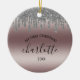 Silver Glitter My First Christmas Ceramic Ornament. This is a modern style with a solid background and a calligraphy style name. The perfect accent to modern homes at Christmas time.