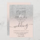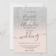 Silver glitter ombre blush pink script wedding invitation