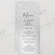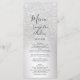 A chic and luxurious silver glitter ombre metallic foil wedding dinner menu with elegant calligraphy typography.