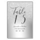 A chic and luxurious silver glitter ombre metallic foil table number wedding with elegant calligraphy typography.