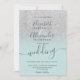 Silver glitter ombre sage green script wedding invitation