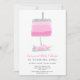 Silver glitter pink floral cake first birthday invitation
