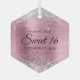 Silver Glitter Pink Foil Sweet 16 Glass Tree Decoration
