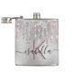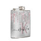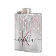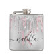 A faux silver metallic foil looking background with pink and faux silver glitter drips, paint dripping look. Personalise and add a name and monogram letter. The name is written in black with a large, bold modern hand lettered style script with swashes. The monogram letter in pink. To keep the swashes only delete the sample name, leave the spaces or emoji's in front and after the name.