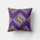 Silver Glitter Purple Monogram Bling Chic Cushion