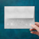 A faux silver metallic looking background with faux glitter dust. Personalise and add your name and return address on the back. The name is written with a modern and trendy handlettered style script. Perfect for birthday party invitations!