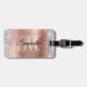 Silver Glitter Rose Gold Curly Monogram Luggage Tag