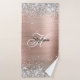 Silver Glitter Rose Gold Foil Fancy Monogram Bath Towel