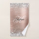 Silver Glitter Rose Gold Foil Fancy Monogram Hand Towel