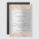A faux silver metallic looking background. Decorated with rose gold faux glitter. Personalise and add your names and party details.