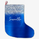 Silver Glitter Royal Blue Glam Name Large Christmas Stocking