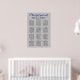 An elegant seating chart with a glittery silver background image with Royal blue and black fonts. This beautiful seating chart is part of a matching wedding suite that can be fully personalised.
