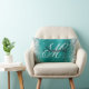 Silver Glitter Shiny Aqua Teal Foil Fancy Monogram Lumbar Cushion