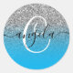 Silver Glitter Sky Blue Ombre Monogrammed Classic Round Sticker
