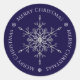 Silver Glitter Snowflake Merry Christmas Navy Blue Classic Round Sticker