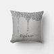 Silver Glitter Sparkle Drips Script Custom Name Throw Pillow.
