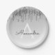 Silver Faux Dripping Glitter and Sparkle Elegant Birthday or Bachelorette Party Plates. These Wedding, Bridal Shower or Birthday Party Plates can be customised to include your initial and first name. Please contact the designer for customised matching items.