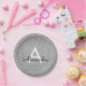 Silver Glitter & Sparkle Monogram Birthday Paper Plate