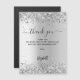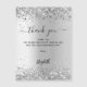A faux silver looking background, decorated faux glitter, sparkles. Large hand lettered script and the text: Thank You. Personalise and add your thank you note and name.