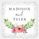 This chic sticker features the names of the couple in an elegant black script at the top, and a pretty colourful watercolor floral wreath arrangement at the bottom. A silver confetti glitter sparkles border and white background completes the design. This sticker can be easily personalised with your custom names, and is perfect for an engagement, wedding, or anniversary. You can even change the font, text colour and font style using the customise option!