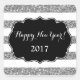 Happy New Year 2017 stickers in festive silver glitter effect stripes pattern with black and white details.