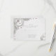 This stylish elegant wedding RSVP flat reply card has a silver glitter flourish swirl design at the top left and bottom right. There are jewel embellishments that are hot fuchsia pink coloured. In the middle, you can easily customise your wedding RSVP information. PLEASE NOTE, the jewels are FAUX, not a real embellishment, they are just part of the design. This trendy RSVP card would work great for a winter wedding.
