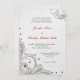 This stylish elegant wedding invitation has a silver glitter flourish swirl design at the bottom left and top right. There are jewel embellishments that are dark red coloured. In the middle, you can easily customise your wedding ceremony information. PLEASE NOTE, the jewels are FAUX, not a real embellishment, they are just part of the design. This trendy invite would work great for a winter wedding.