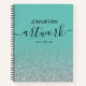Girly Silver Glitter Teal Blue Ombre Black Elegant Personalised Sketchbook for your artwork with Your Name in Hand Lettered Script Font Typography. Elke Clarke© Add you name or monogram or text using the customise menu.