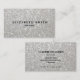 These elegant business cards feature a silver glitter. Your name appears in trendy handwritten script typography. There is also room to include your social media information on the back.